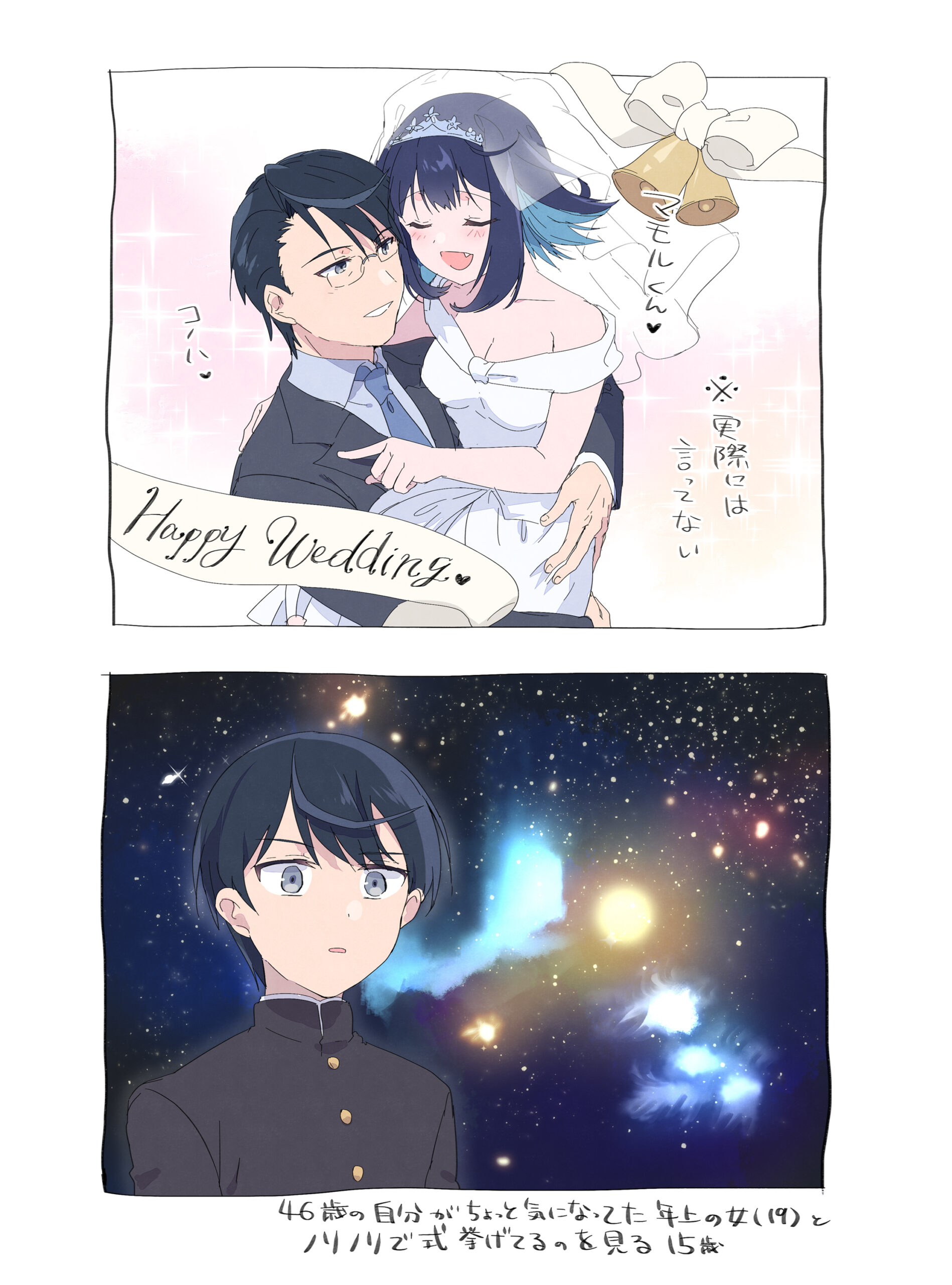 15歳少年と19歳女子のカプにハマったと思ったら気づいたら46歳男性と19歳女子のカプ描くことになっててポルナレフ状態になるかと思った